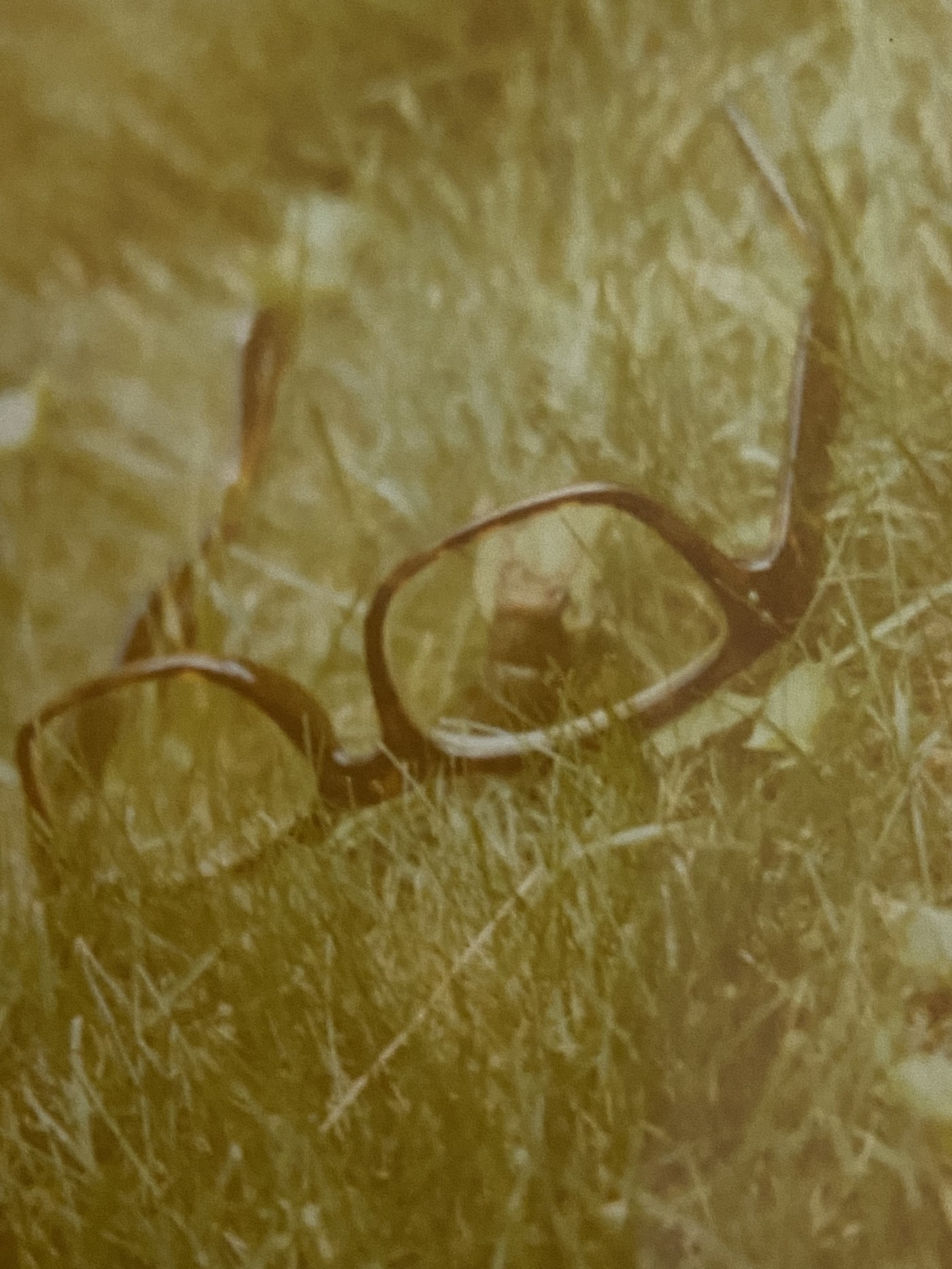 Staghorn beetle, eyeglasses, neighbor’s yard.